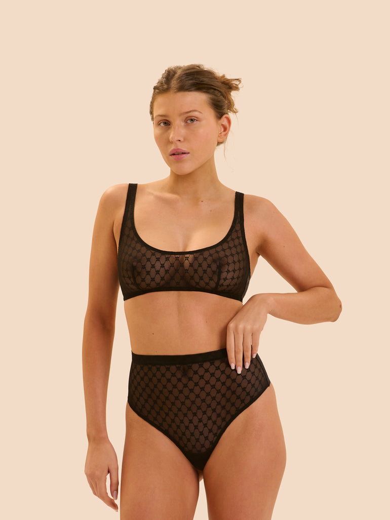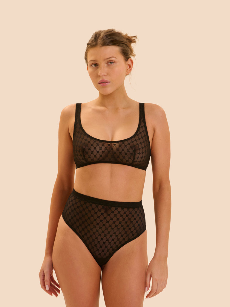 High-waist thong in lace.